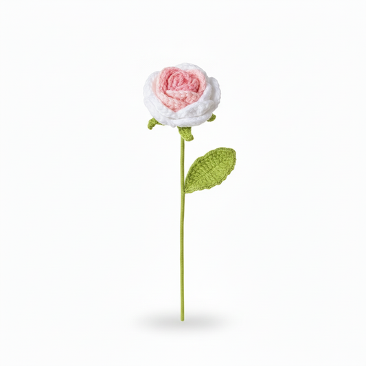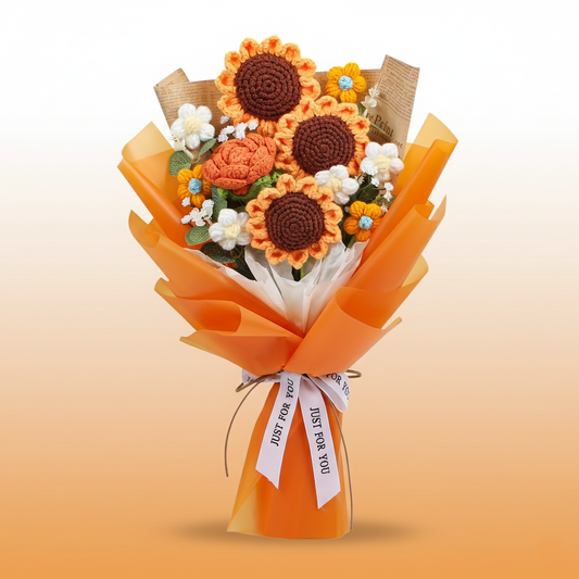 Premium gehaakt bloemenboeket – handgemaakte roze gelukzaligheid