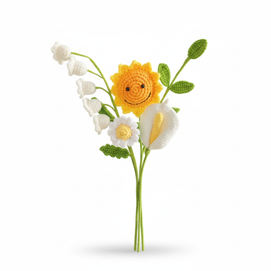 Onze handgemaakte gehaakte bloemen zijn met liefde gemaakt om blijvende schoonheid in huis te halen. Ze verwelken nooit, verwelken nooit en blijven eeuwig helder. Perfect om cadeau te doen of om een gezellige sfeer te creëren in je ruimte. Elke bloem is uniek en straalt de warmte van handgemaakte zorg uit.