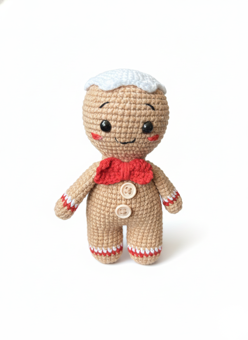 Maak kennis met Biscotti , een lief en vrolijk peperkoekenvriendje dat overal waar hij komt de warmte van Kerstmis met zich meebrengt. Met zijn zachte, koekjesbruine stiksels, roomwitte haar, roze wangen en felrode strik lijkt Biscotti zo uit een kerstbakkerij te komen. Zijn kleine geborduurde glimlach en fleurige knoopjes geven hem een speelse charme die harten meteen doet smelten.