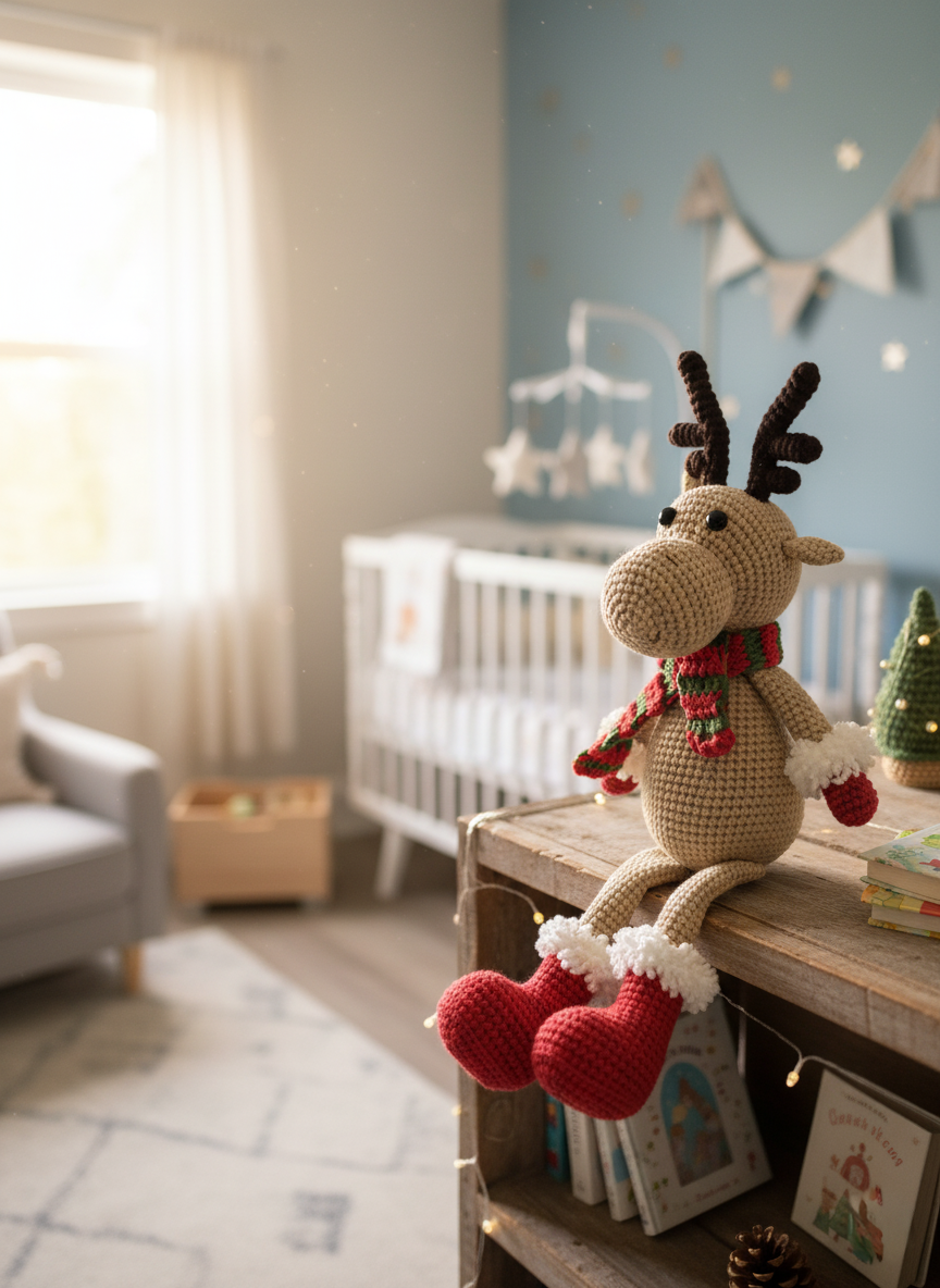 Maak kennis met Frosti , het allerliefste rendiertje dat ooit door besneeuwde bossen en gezellige kerstnachten dwaalt. Met zijn zachte gewei, warme rode laarzen en feestelijke gestreepte sjaal brengt Frosti de magie van de winter overal mee naartoe. Zijn zachte ogen en vrolijke rode neus maken hem meteen een favoriet – vol warmte, charme en kerstsfeer.