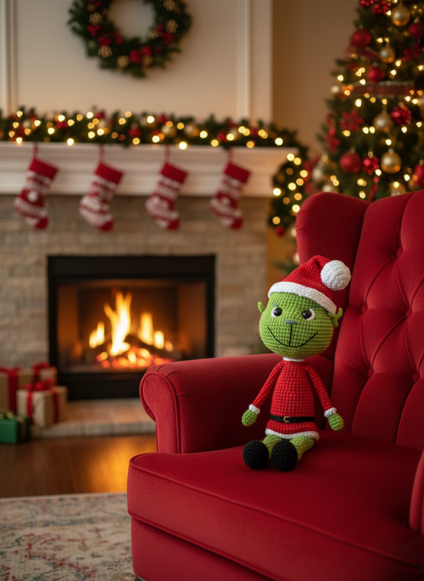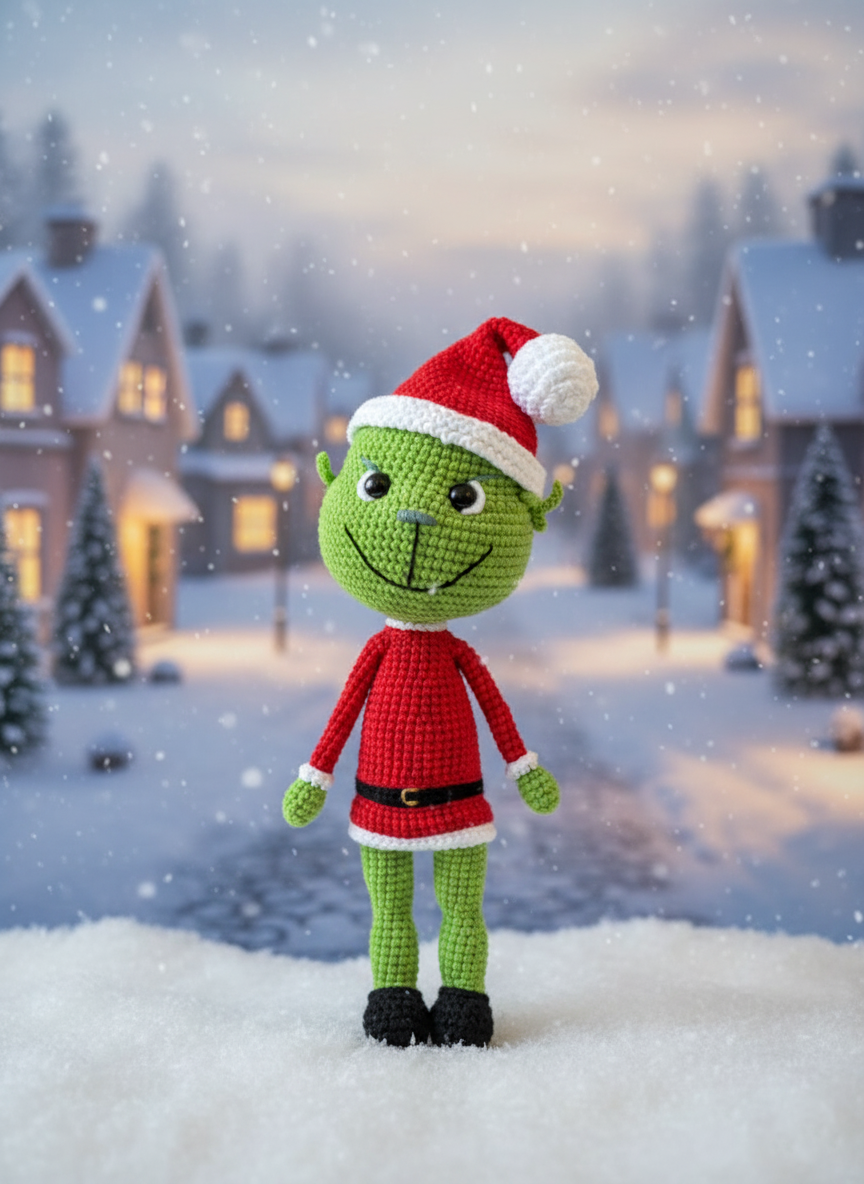 Maak kennis met Gremble, het charmante kleine personage dat, ondanks zijn ondeugende grijns, stiekem dol is op alles wat feestelijk is! Deze schattige Gremble-haakpop is gekleed in een klassieke, door de Kerstman geïnspireerde outfit, compleet met een comfortabele rode muts en een tuniek met riem, klaar om wat onconventionele feestvreugde te verspreiden.