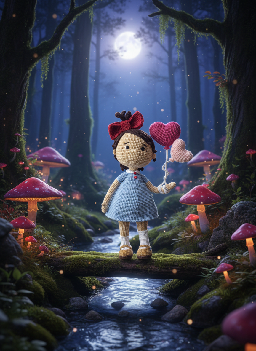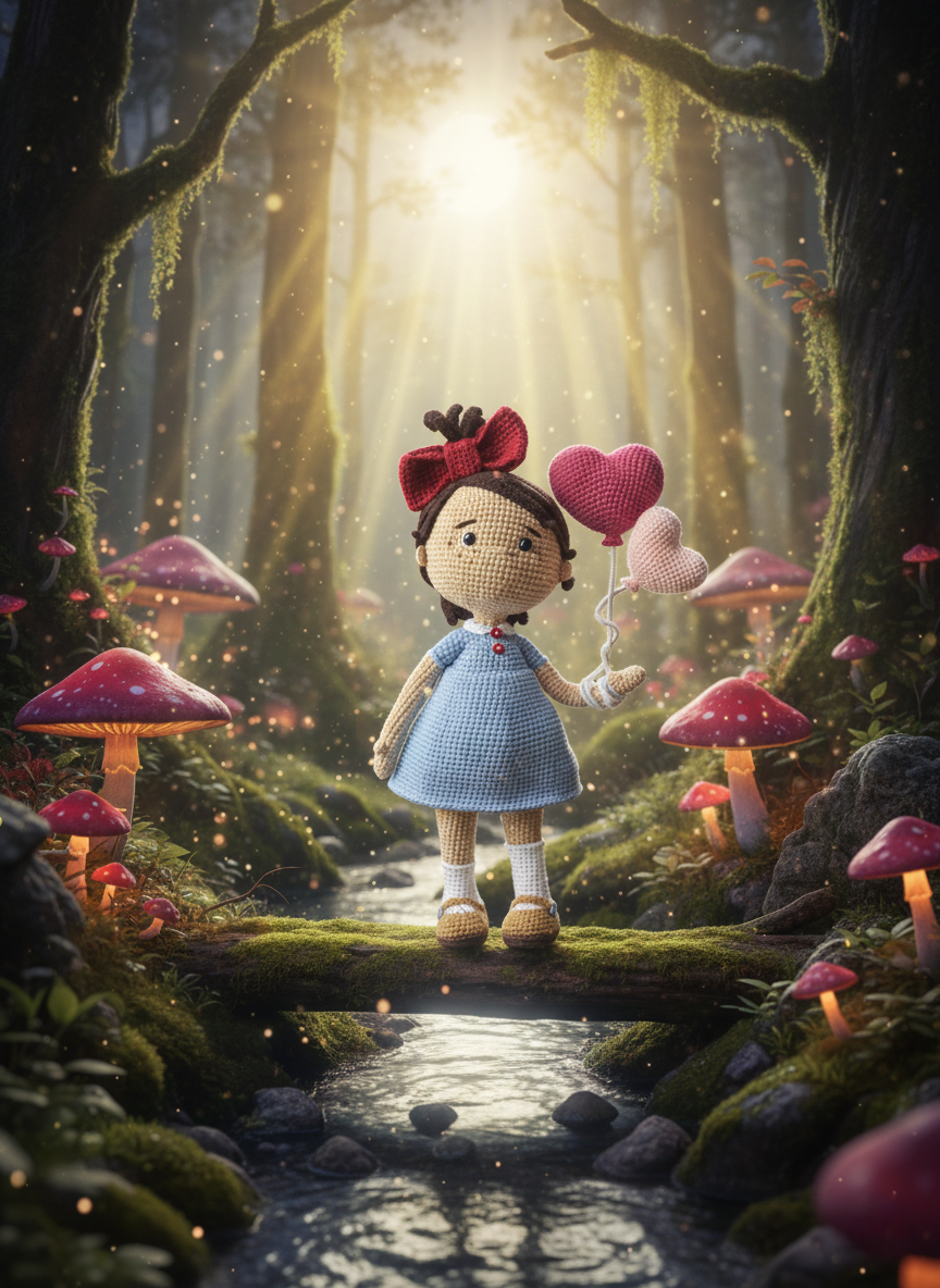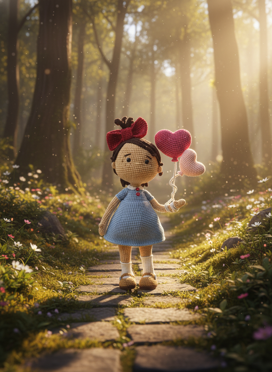 Maak kennis met Luvia , een zachtaardige lieverd die overal waar ze gaat liefde met zich meedraagt. Met haar zachtblauwe jurk, schattige grote rode strik en een paar hartvormige ballonnen in haar hand brengt Luvia warmte, vreugde en een vleugje magie in elk moment. Haar vriendelijke ogen en kalme uitdrukking maken haar een troostende vriendin voor speeltijd, bedtijd en alle zoete momenten daartussenin.