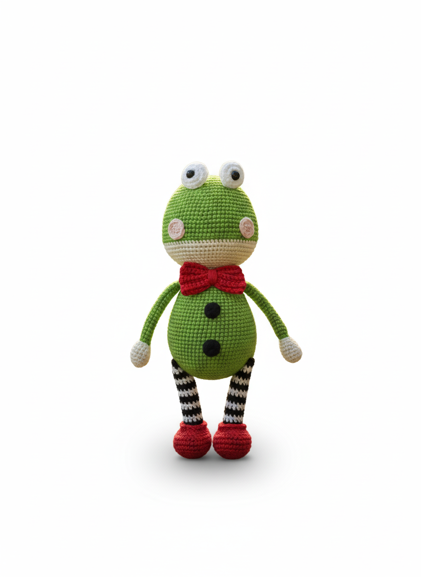 Meneer Kikker is het perfecte cadeau voor babyshowers, verjaardagen of voor iedereen die van unieke, handgemaakte schatten houdt en van de charmante charme van een vriendelijke kikker.