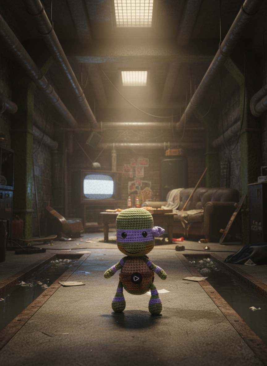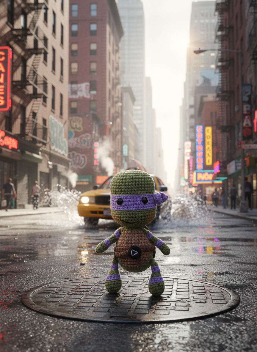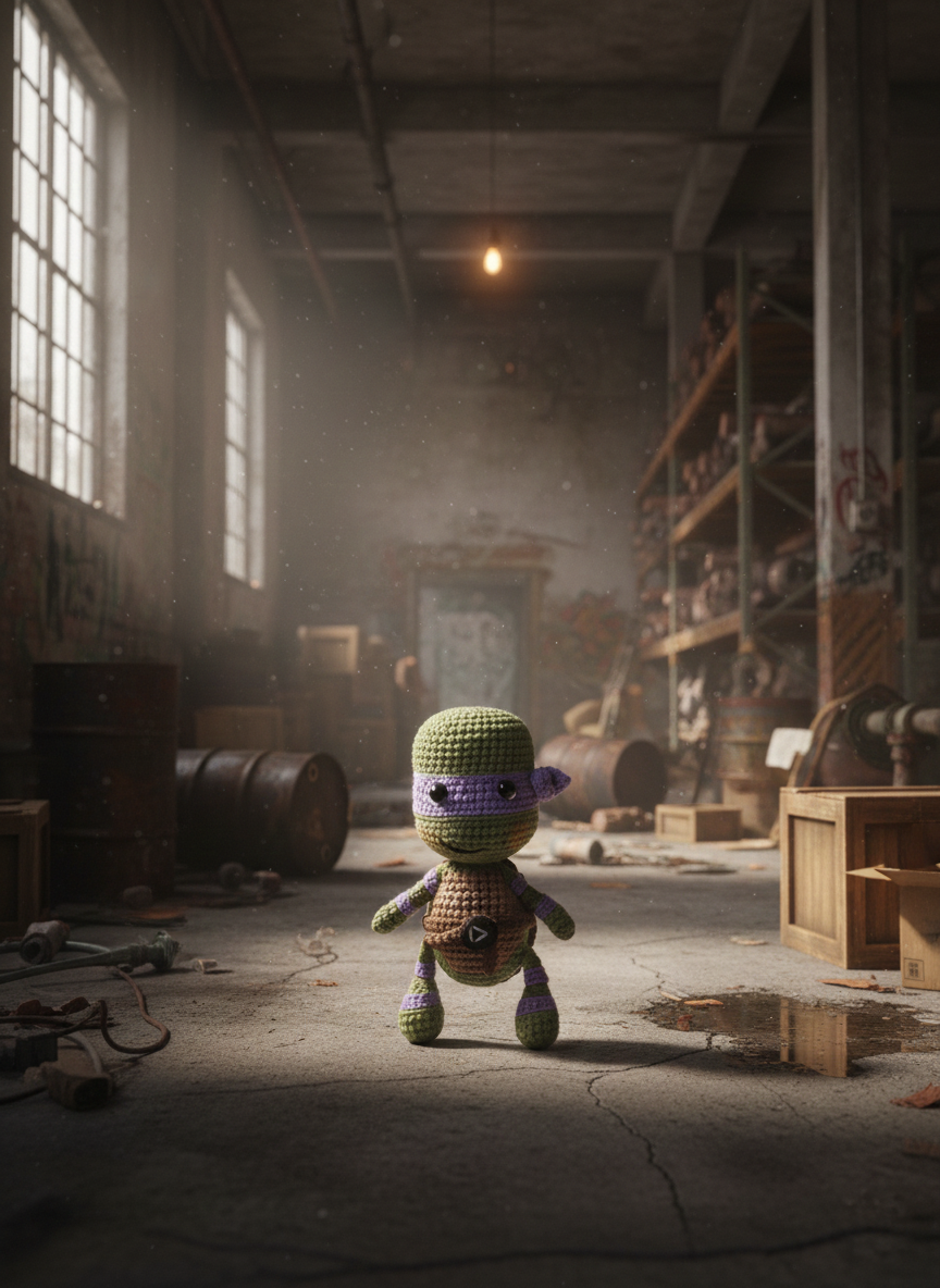 Maak kennis met Ninjoo , de kleine held die met een glimlach en een flinke dosis moed in actie komt. Met zijn felpaarse masker, stevige schild en trouwe houten staf staat Ninjoo altijd klaar om zijn vrienden te beschermen en elke uithoek van de wereld te verkennen, van knusse kamers tot denkbeeldige daken van steden. Zijn vrolijke ogen en dappere houding maken hem de perfecte metgezel voor speelavonturen en verhaaltjes voor het slapengaan.