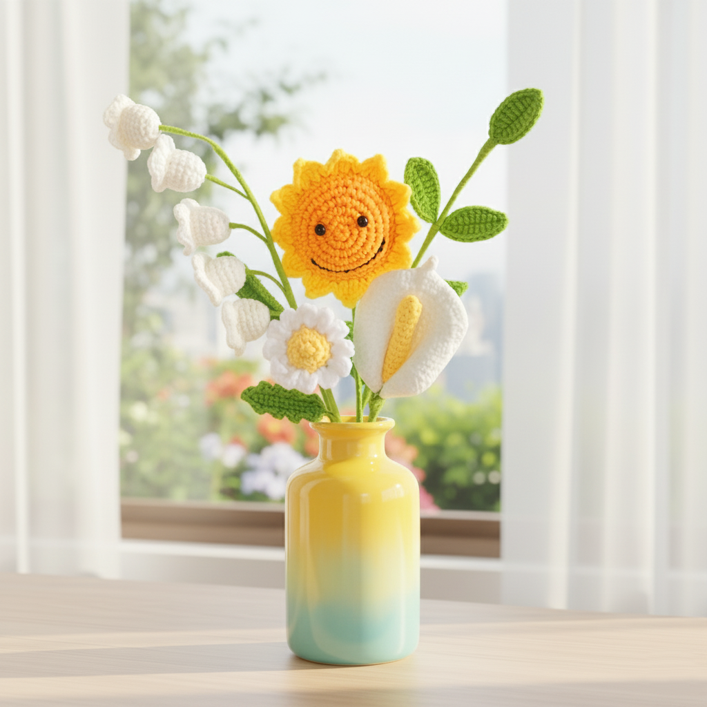 Important: No vase included - This beautiful Crochet flowers comes as flowers only. Please have your own vase ready for display.