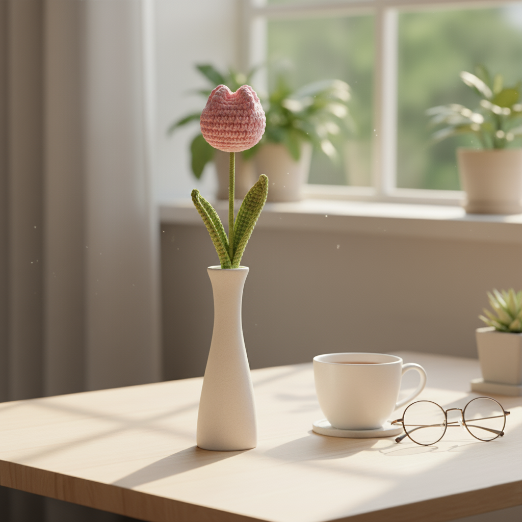 🌸 Handmade with Love – Each tulip is carefully crocheted for a natural and elegant look. 💗 Timeless Beauty – A forever flower that stays fresh and bright all year round. 🌿 Soft & Durable Yarn – Crafted with high-quality cotton yarn and flexible stem. 🎁 Perfect Gift – Ideal for birthdays, anniversaries, or simply to brighten someone’s day. 🏡 Charming Decor – Adds warmth and style to any room, from cozy corners to modern spaces.