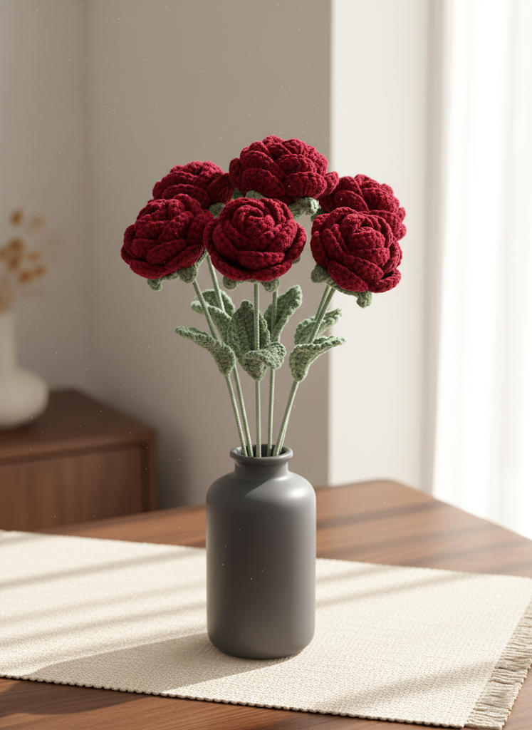 Important: No vase included - This beautiful Crochet flowers comes as flowers only. Please have your own vase ready for display.