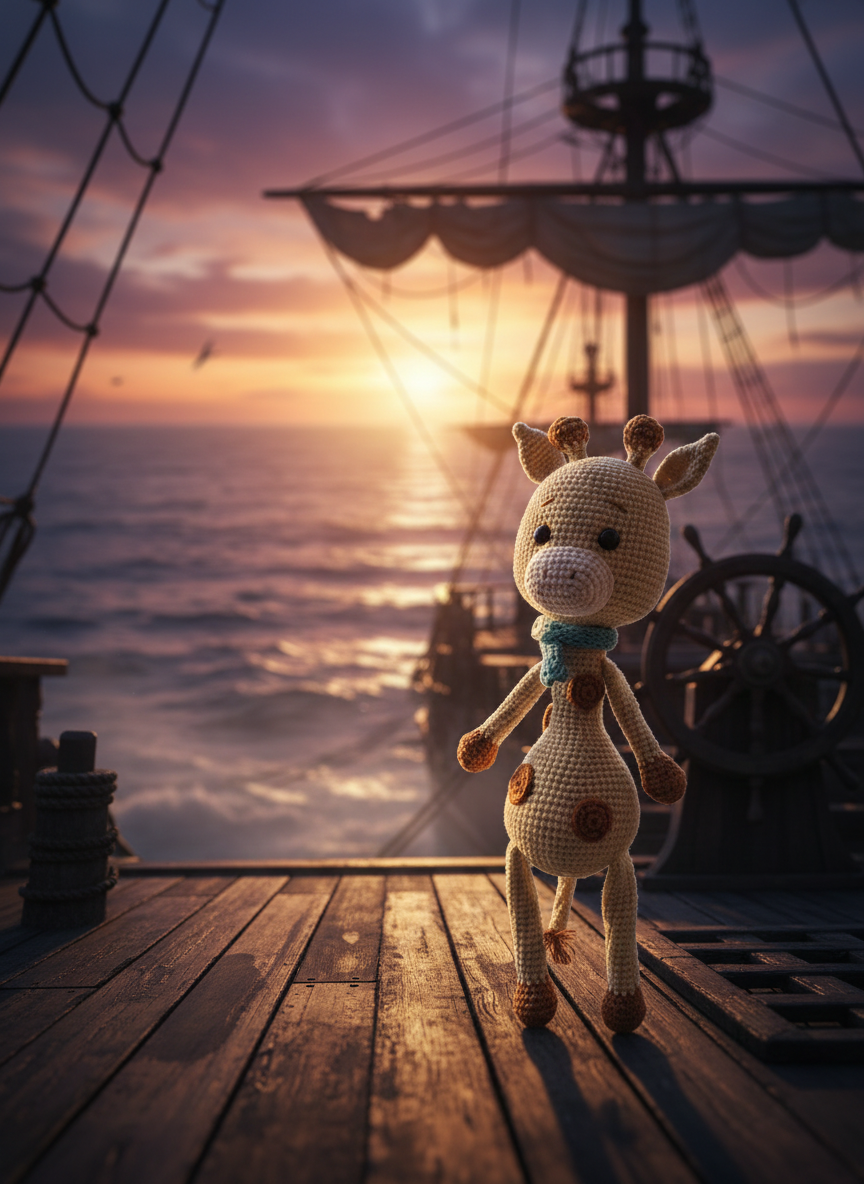 Handcrafted with care, every detail from her tiny horns to her spotty belly is stitched to show her gentle nature. Giri loves strolling through make believe savannas, watching butterflies, and exploring cozy corners of the home. Whether she is perched on a shelf, joining imaginative adventures, or bringing warmth to a child’s room, Giri fills every moment with tenderness and wonder.
