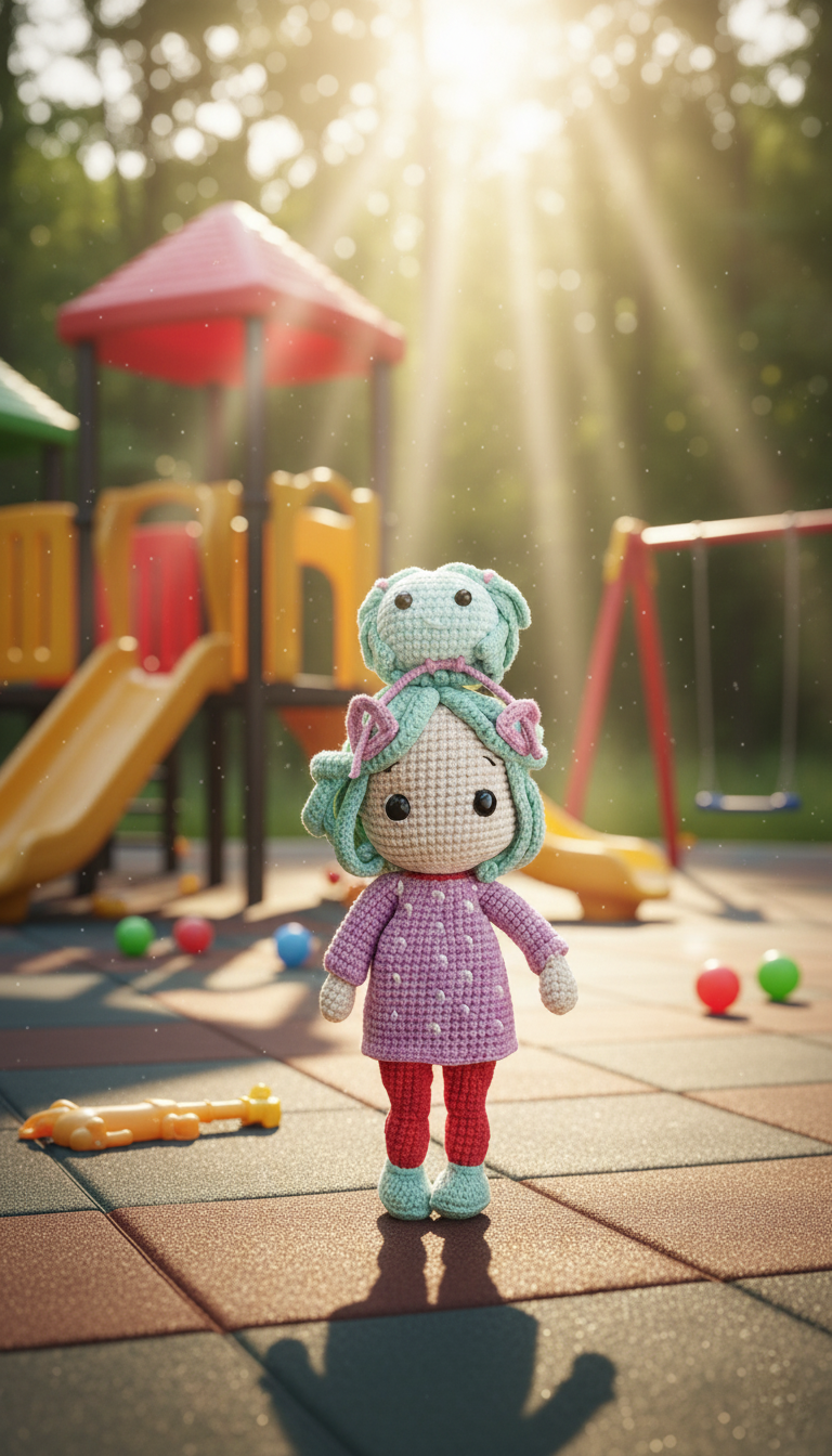 Meet Inky, a charming crochet doll full of sweetness and imagination! With her mint-green hair styled playfully and topped by a cute little sea creature companion, she’s ready to spark smiles and creativity everywhere she goes.