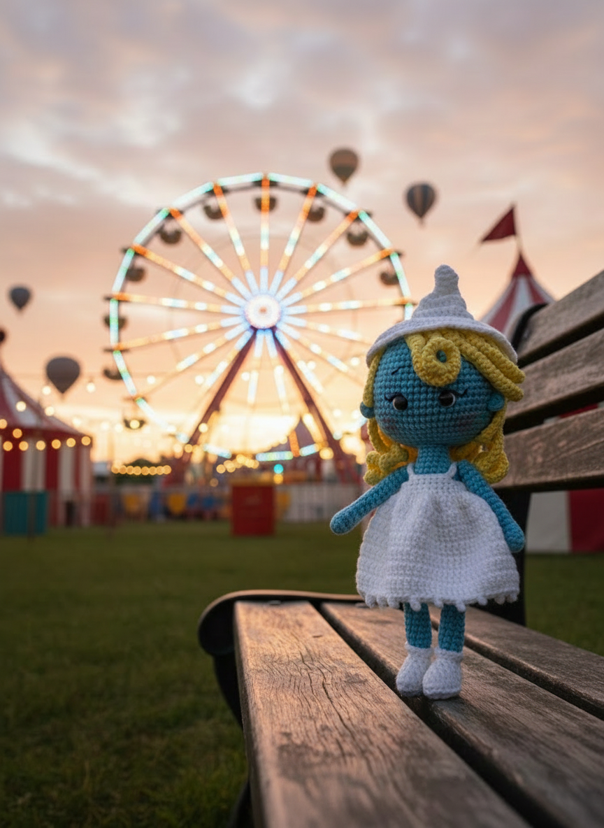 Meet Selvia, a soft-spoken little wanderer who carries the calm of a sunny meadow wherever she goes. With her sky-blue skin, golden curls, and sweet white dress that sways with every tiny step, Selvia feels like a warm breeze on a peaceful summer day. Her little white hat sits delicately above her curls, giving her a charming, dreamy look that kids instantly fall in love with.